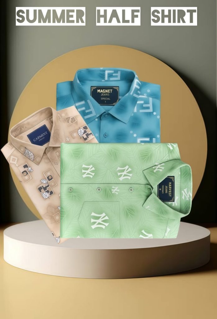 তিন পিস হাফ স্লিভ শার্ট কম্বো মাত্র 1390 টাকা